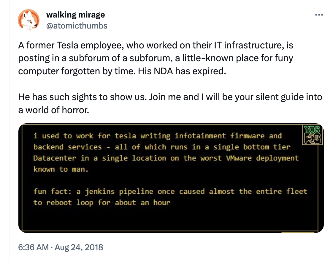 If you think it’s only old staid companies that do this, here’s a story about Tesla’s infrastructure.