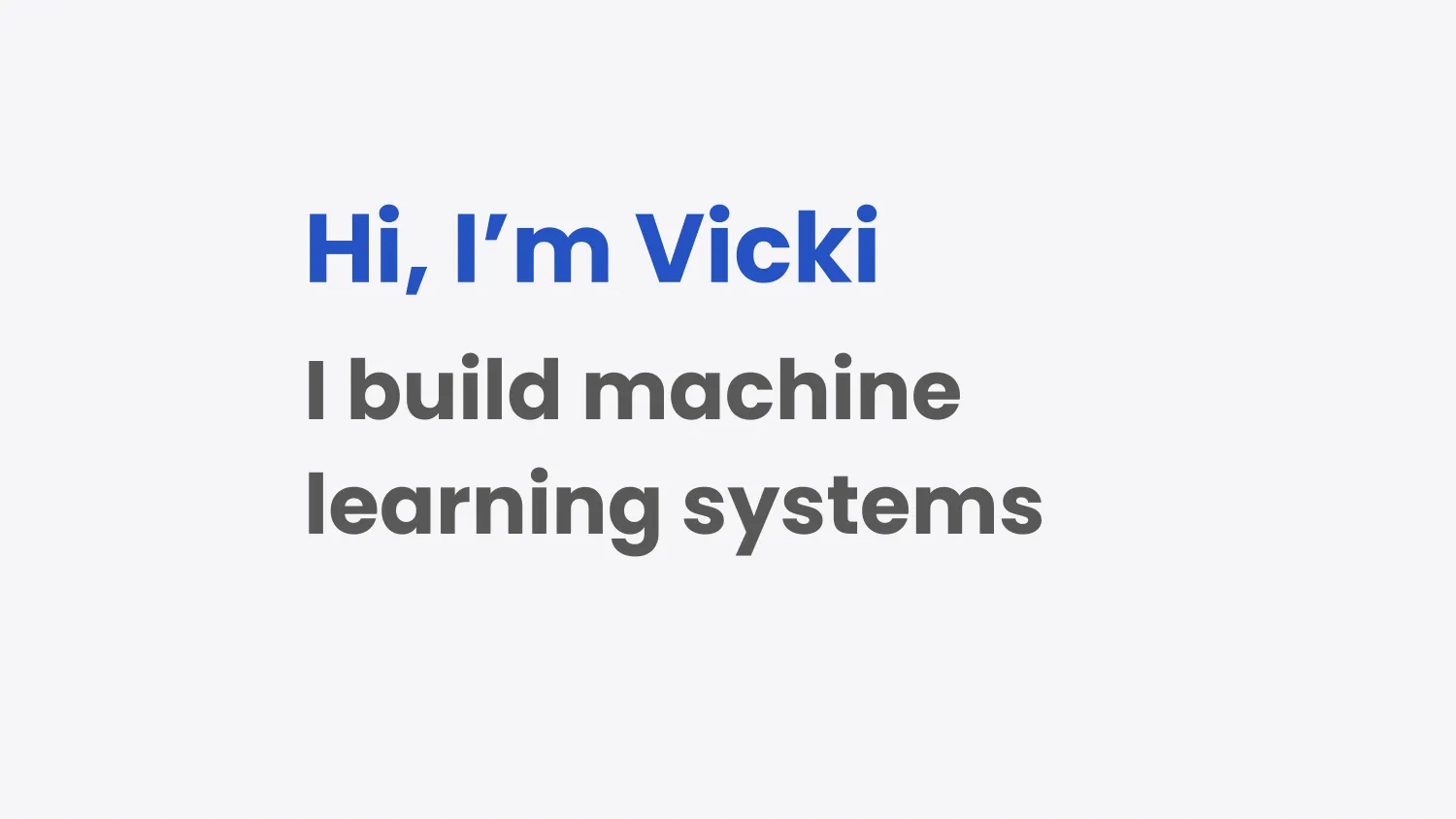 I’m Vicki, and I build machine learning systems.