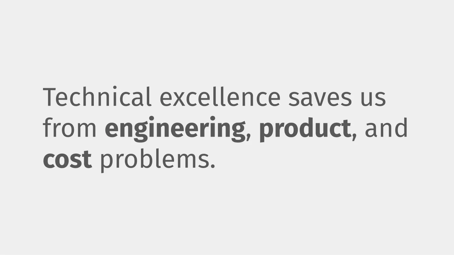 So, striving for technical excellence in industry saves us from engineering, product, and cost problems. Quality is important.