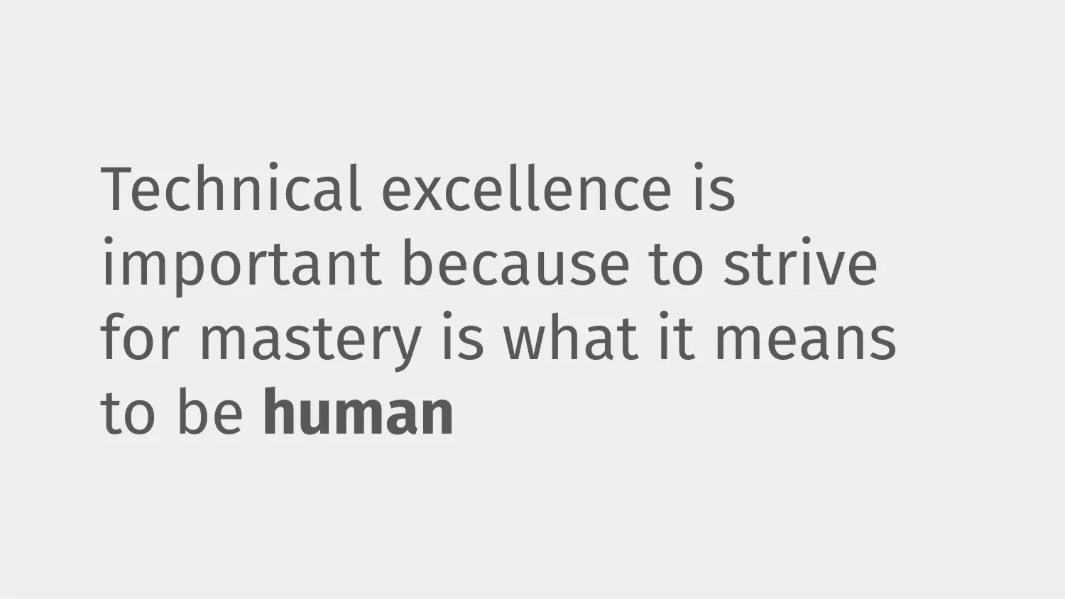 And finally, technical excellence is important because striving for mastery is just about what it means to be human.