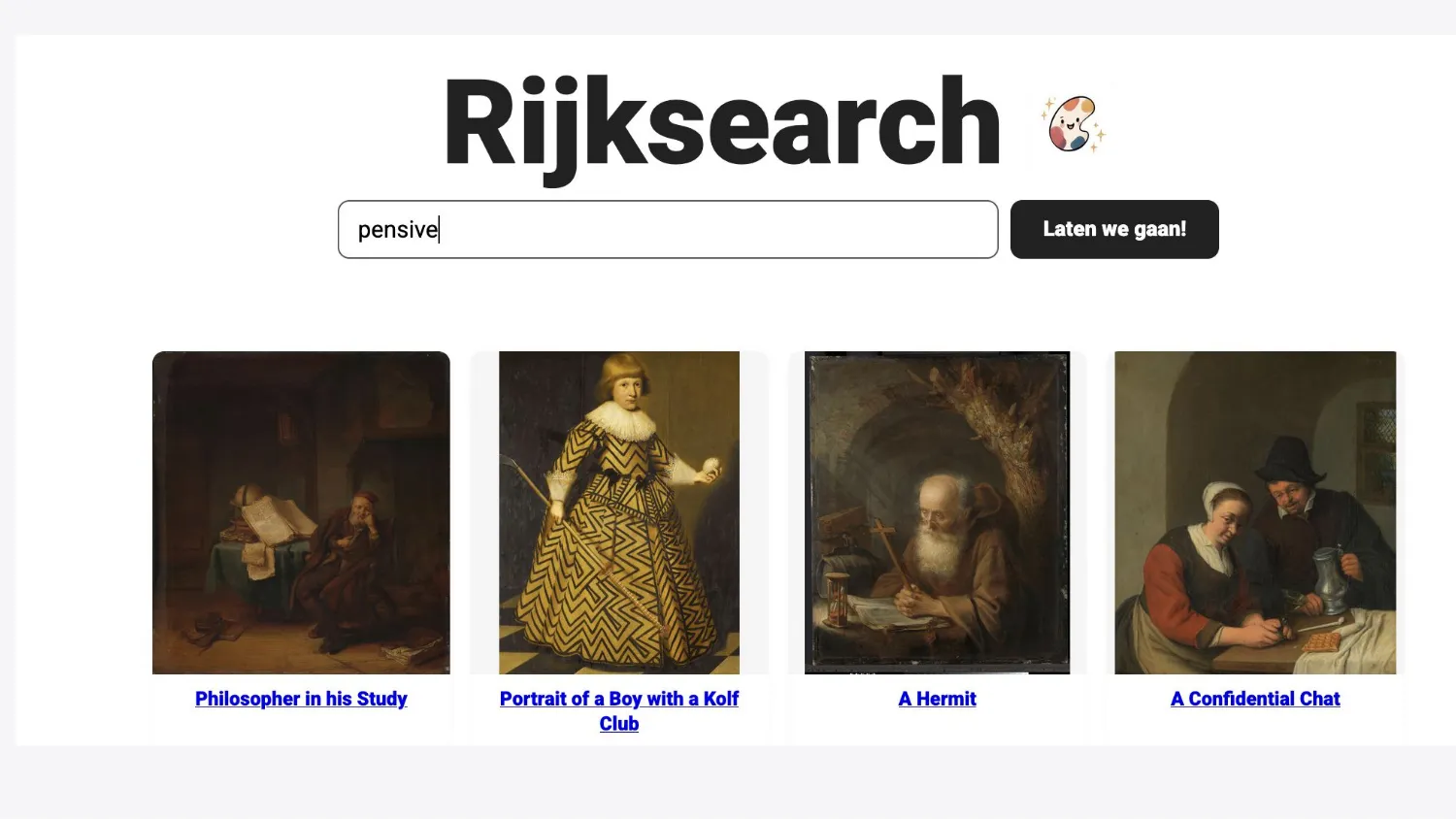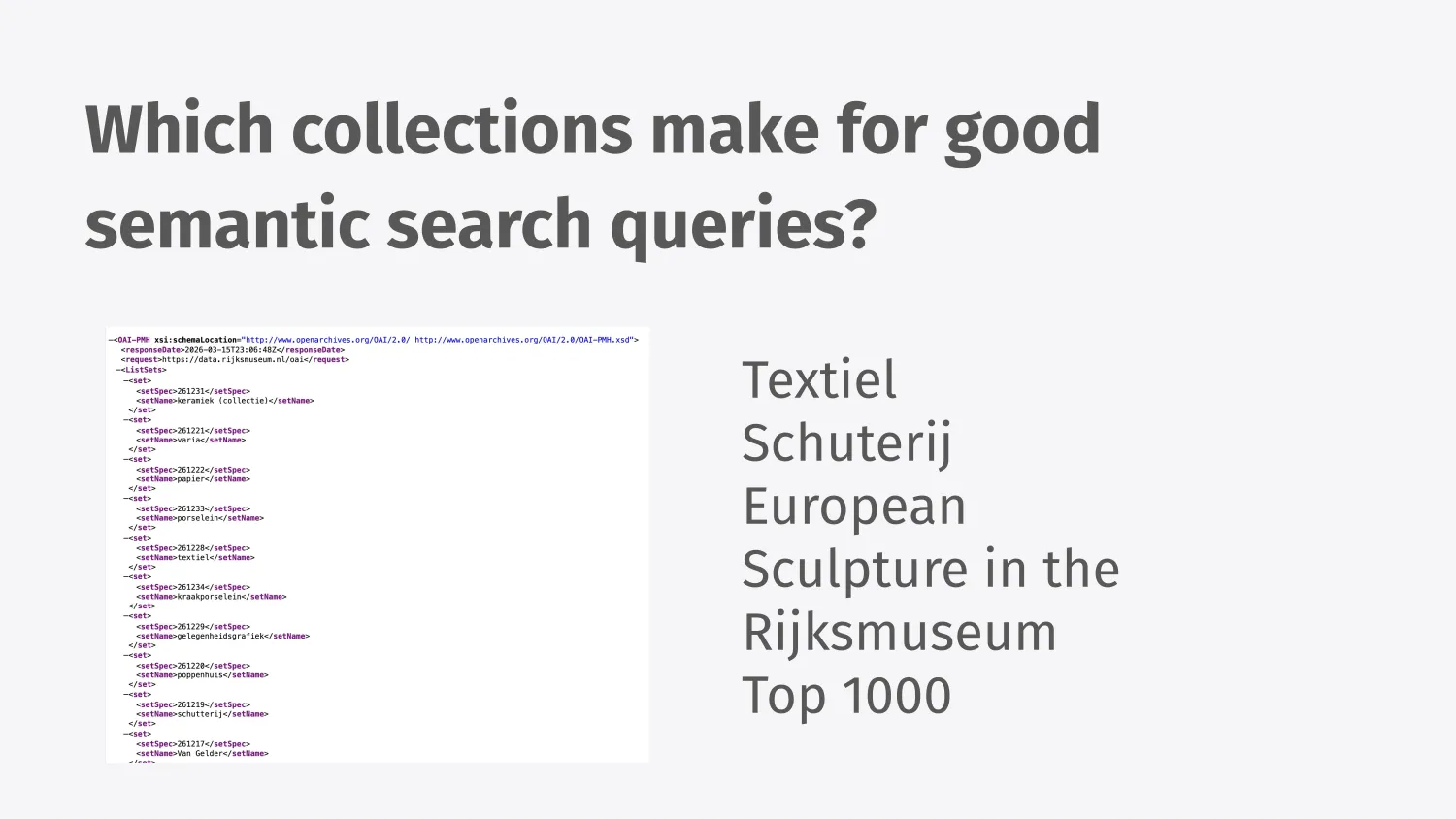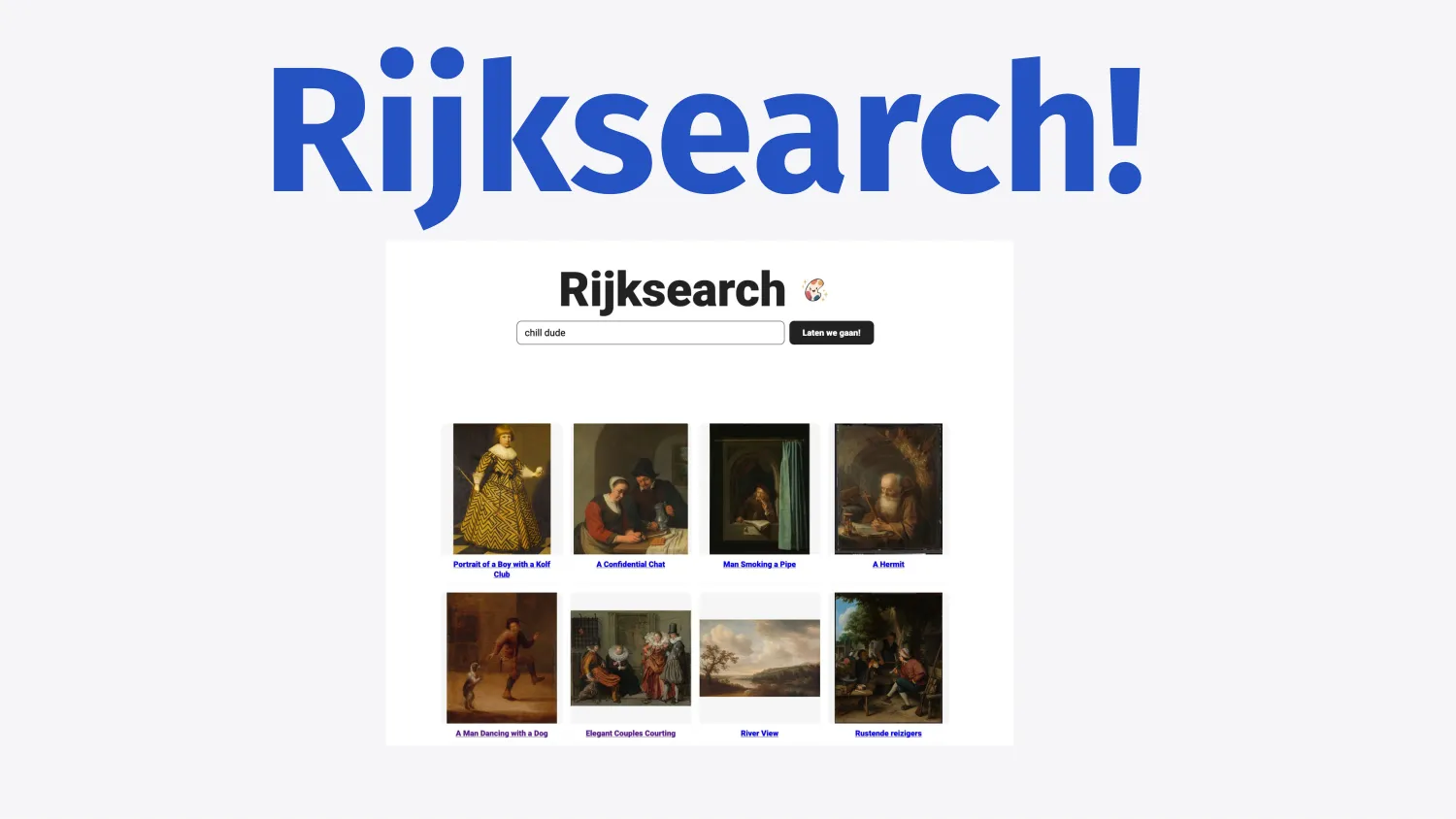So I thought about all this and decided to see how I could apply it to a concrete side project that I was working on. And the side project is called Rijksearch, a semantic search engine.