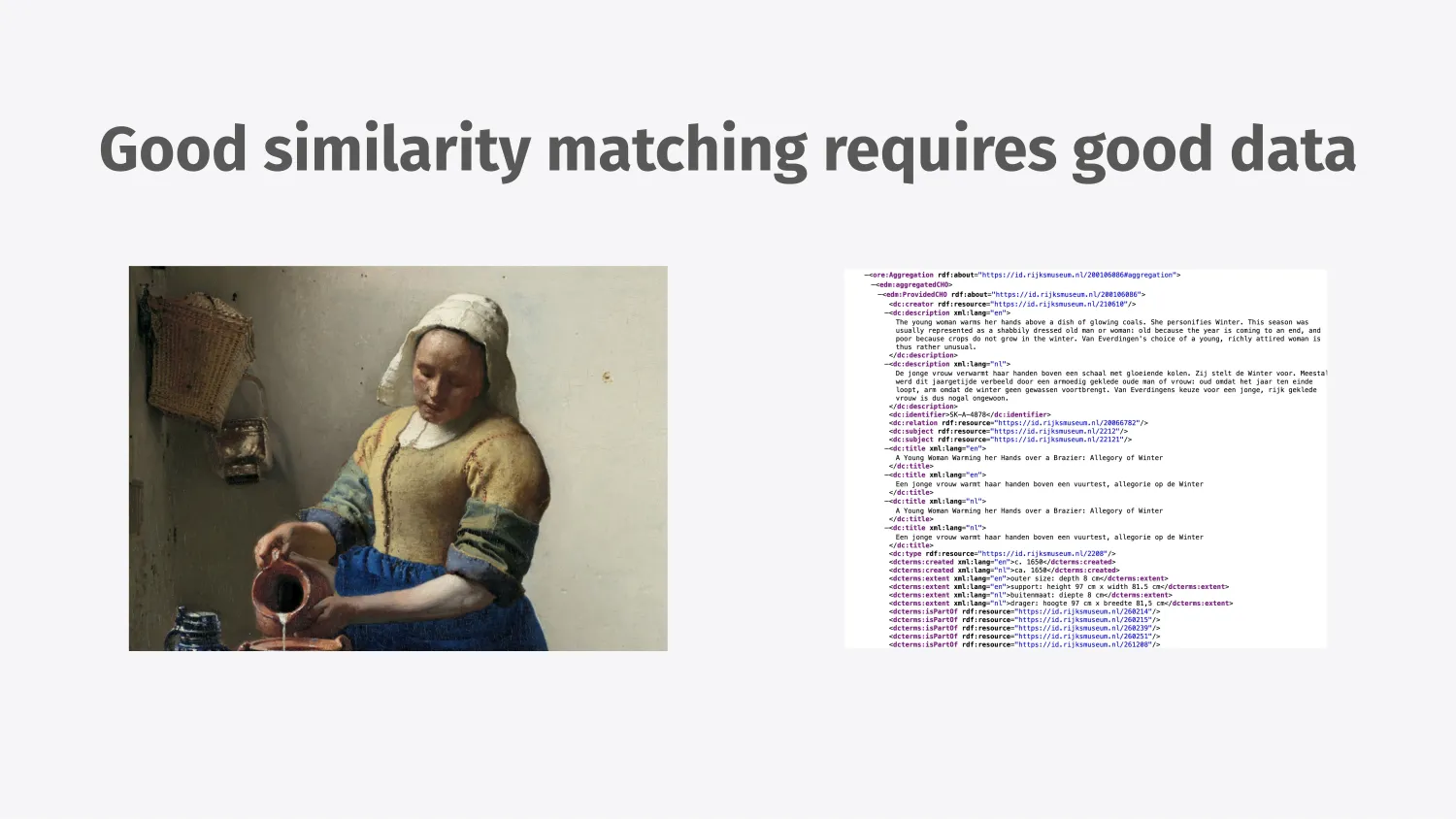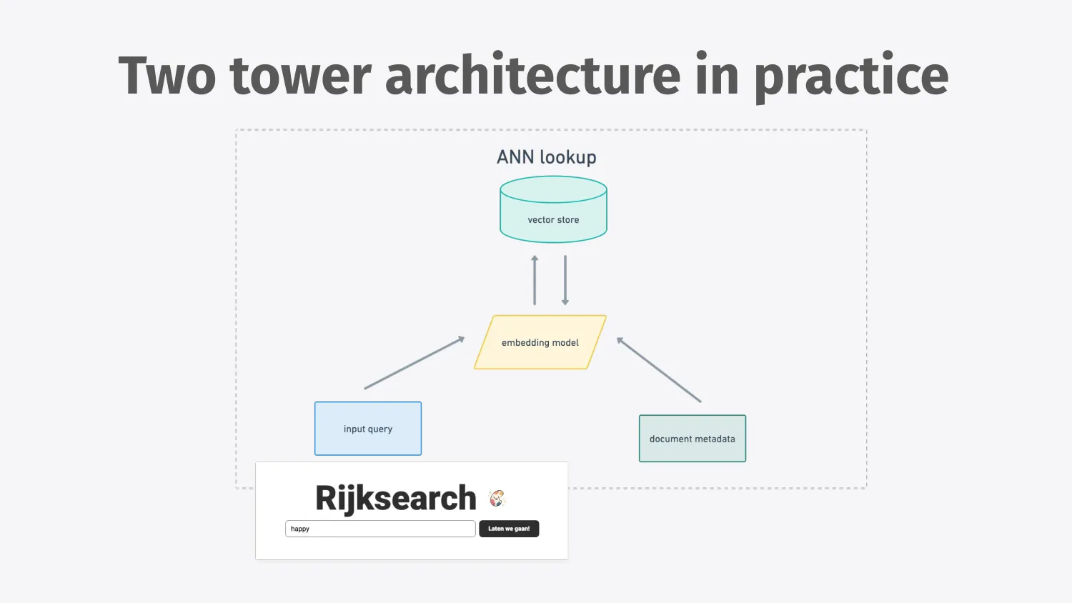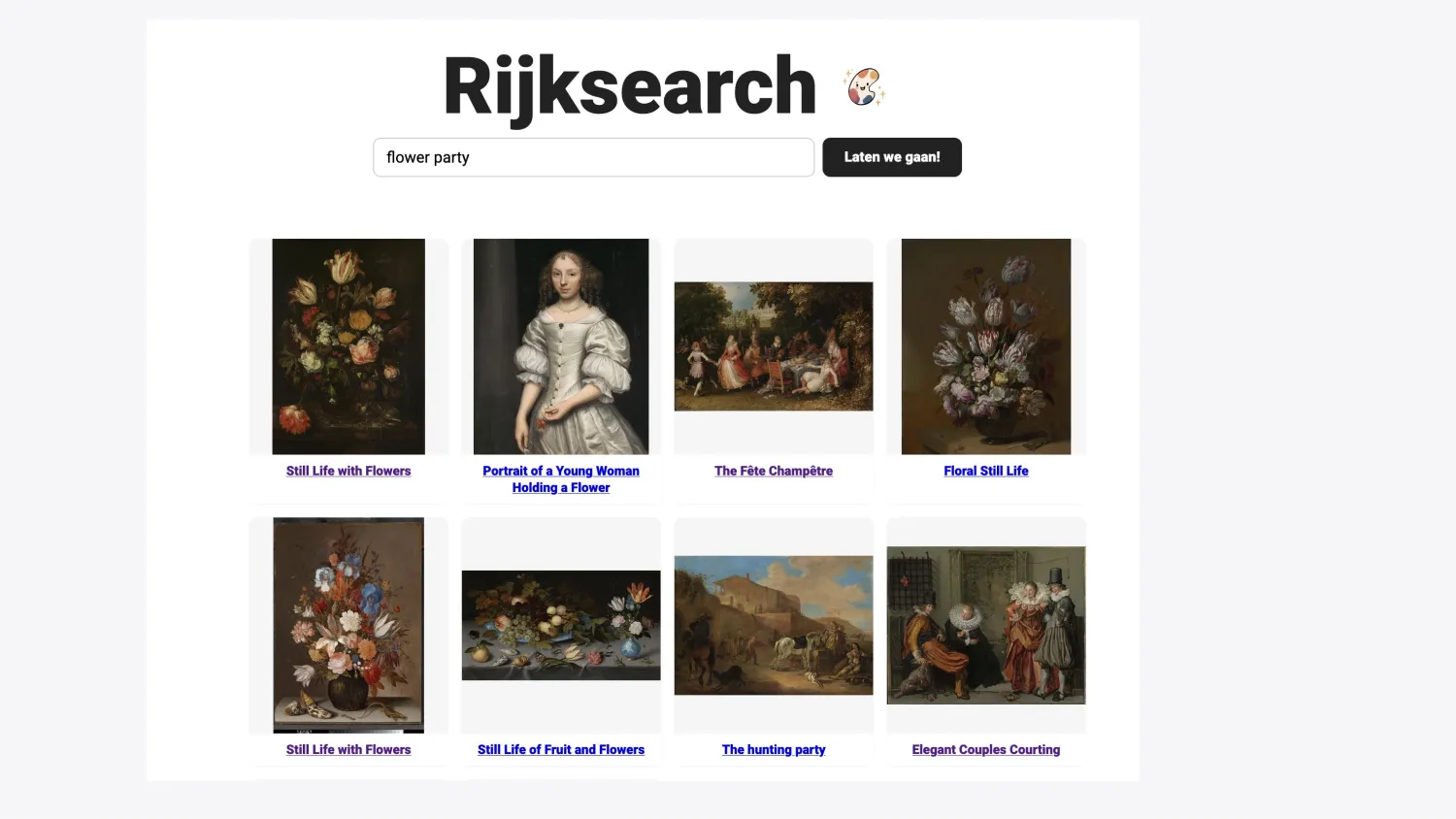 So I thought about all this and decided to see how I could apply it to a concrete side project that I was working on. And the side project is called Rijksearch, a semantic search engine.