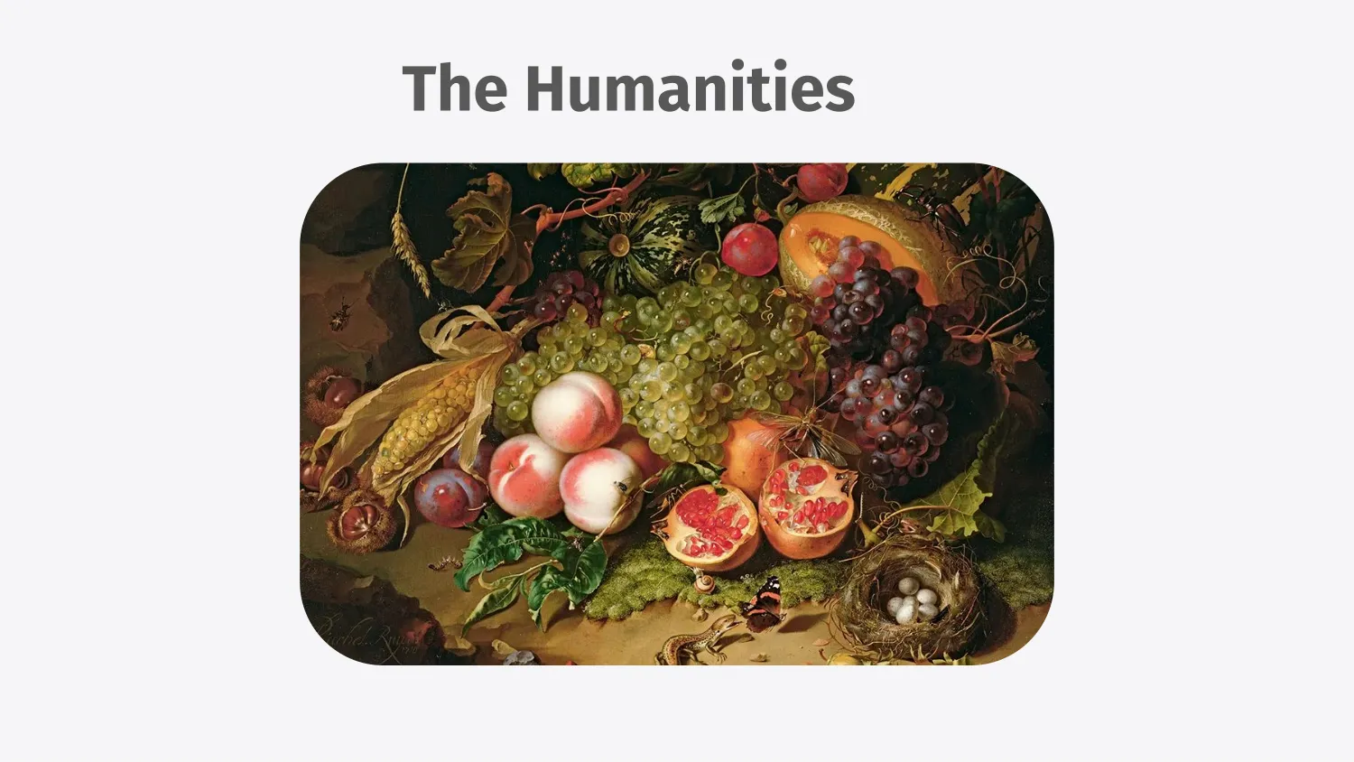 And then finally, the humanities. It’s something I’m always interested in. A lot of my projects revolve around the humanities. A lot of the stuff that I write ties back in some way to the humanities because I don’t think you can really have a balanced view of what developing a good product looks like if you’re just looking at tech. And, I like art. So I’m always down to look at art.