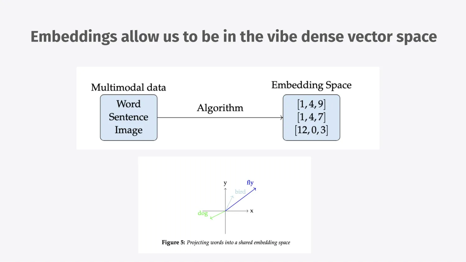 What allows us to do this is that we’re not comparing just text or images. We project them into the embedding space by creating dense vectors out of them and comparing the vectors, the numerical representations.