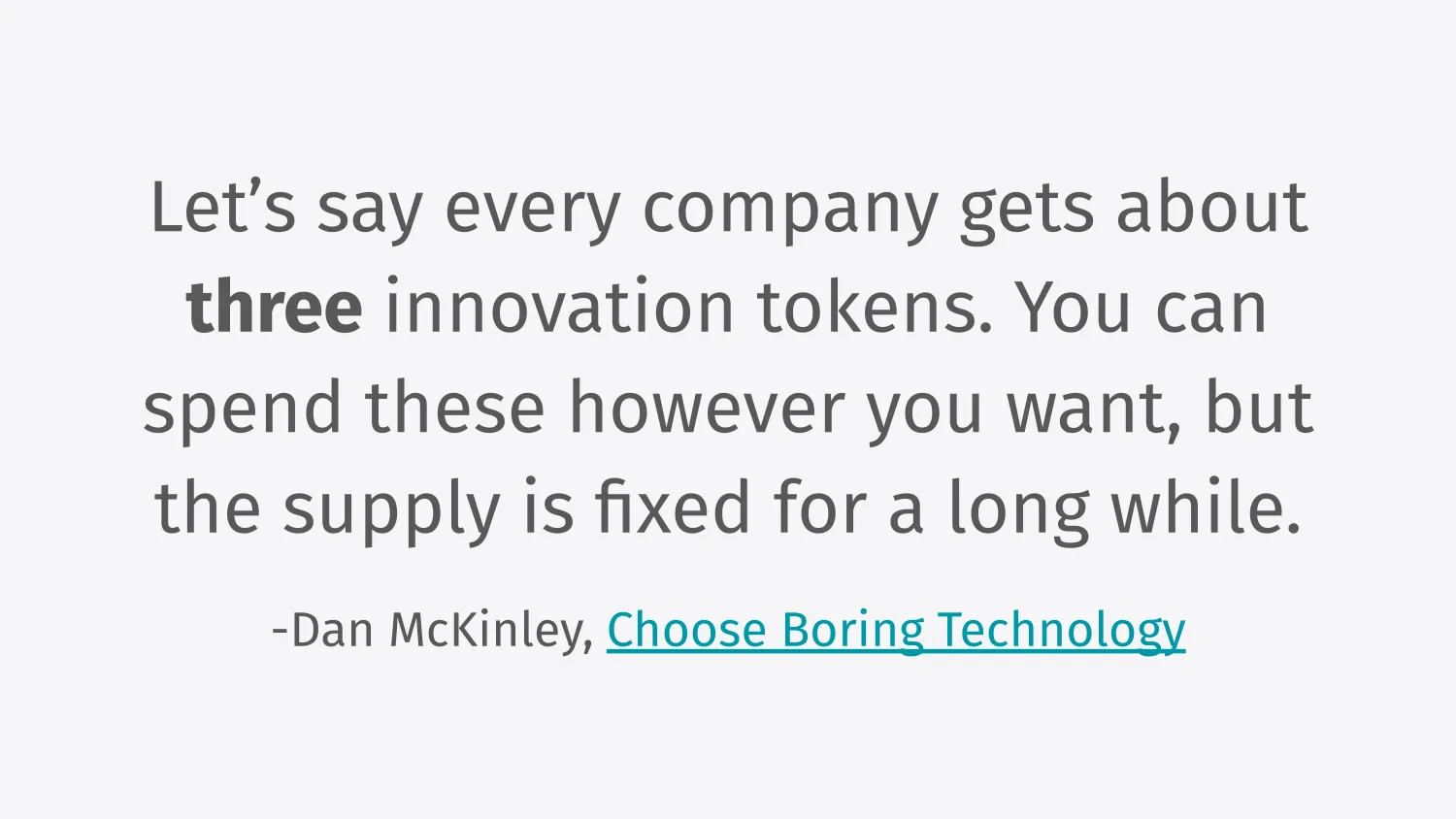 But okay, so how do we build this, given that we’ve already built Viberary and other versions of this system before? The way that I thought about it is that every company gets about three innovation tokens. This is from an amazing and often-cited blog post by Dan McKinley, which says that every company gets three of these tokens.