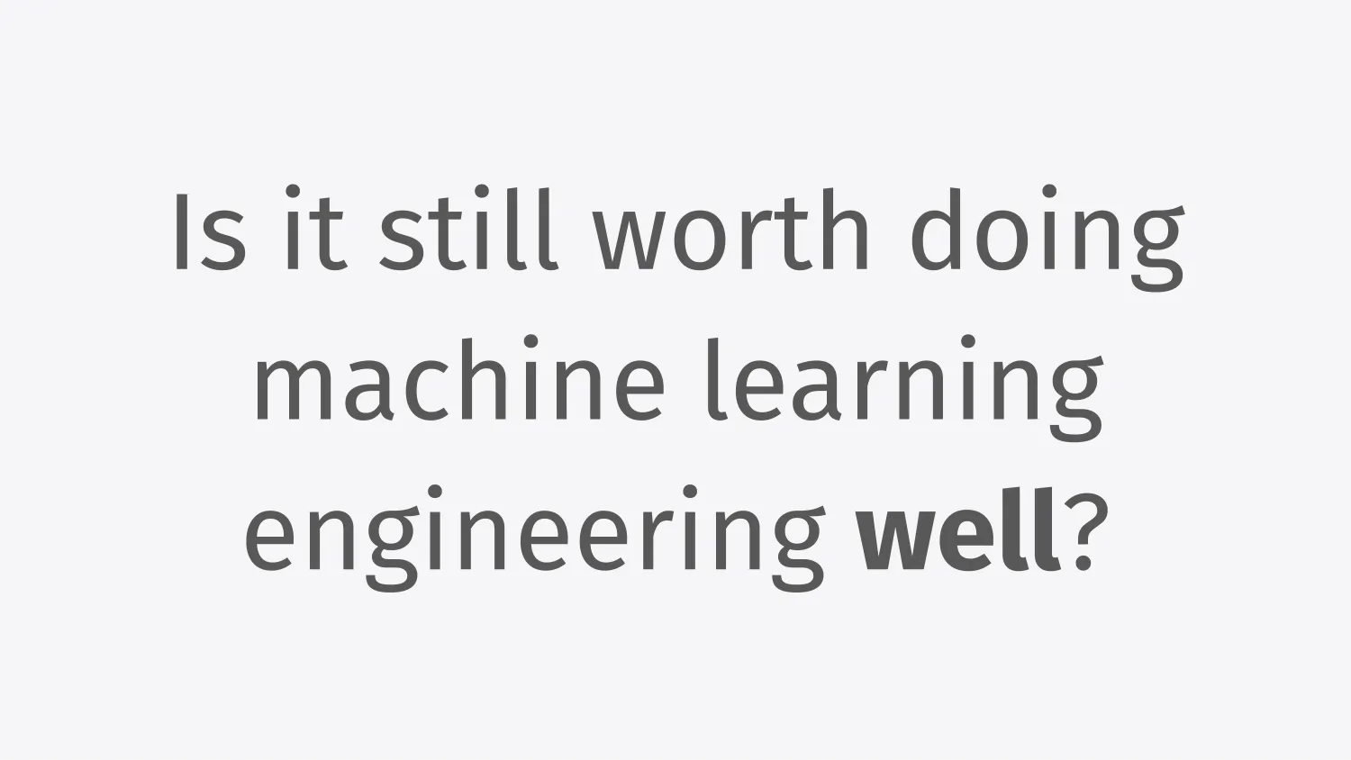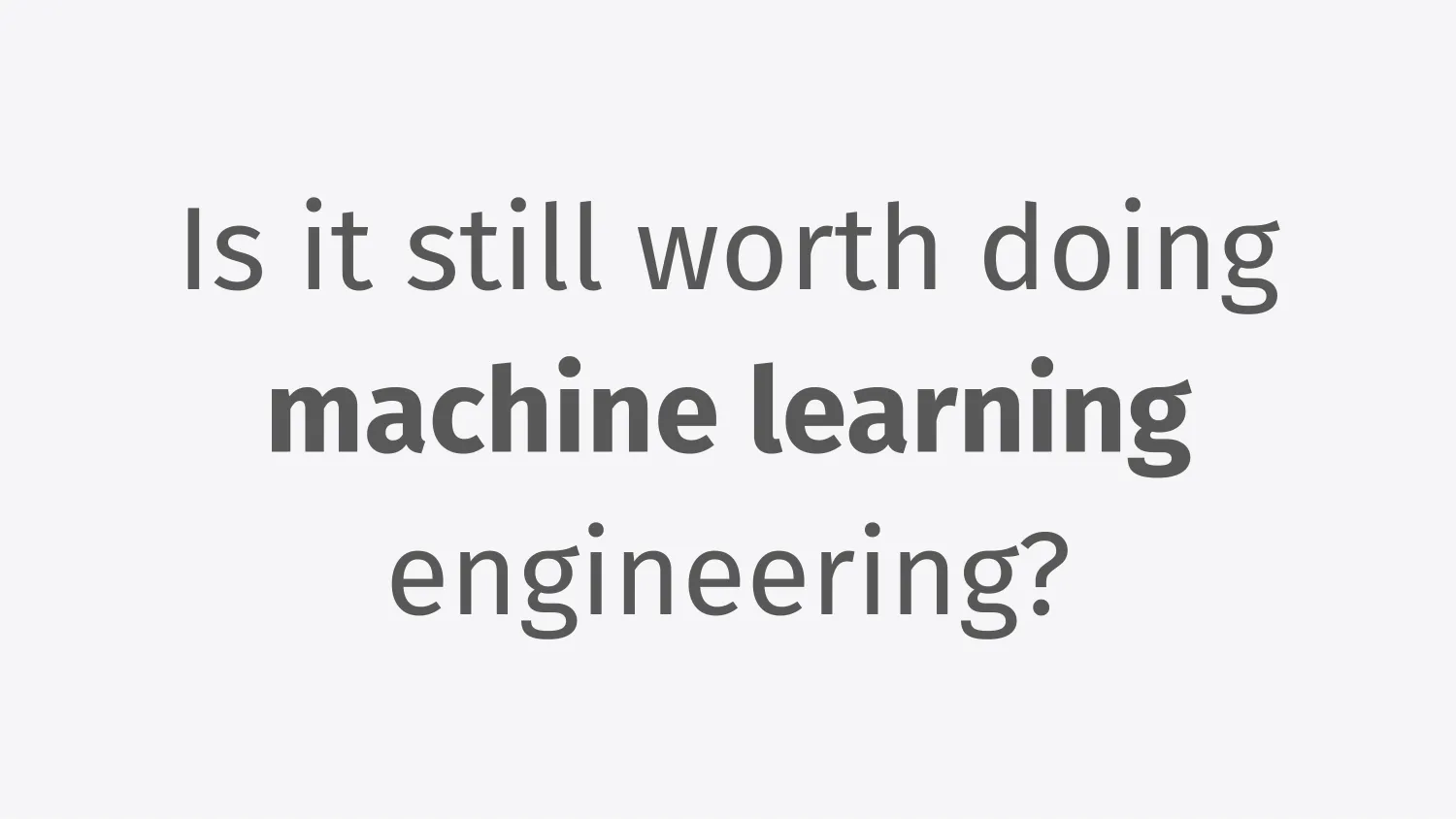 As I’ve been doing machine learning, something I’ve been wondering is, what is the state of machine learning engineering as an industry today? The question I’ve had as I was thinking about how to introduce myself is this big existential question for a machine learning conference, which is, is it still worth doing machine learning engineering?