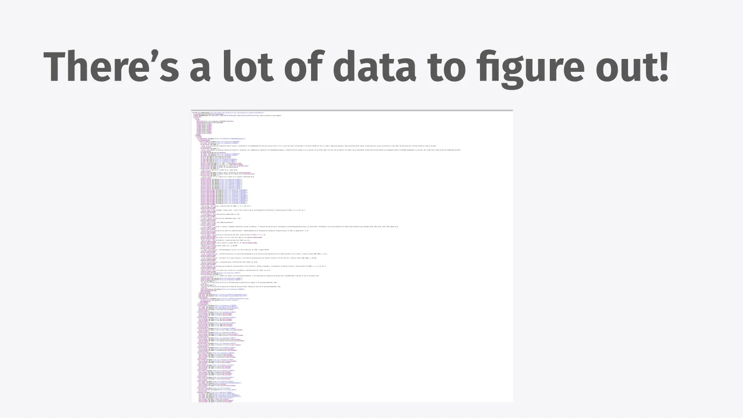 They have metadata for 800, 000 objects, high-resolution photographs. But something that was new to me in working with this data was working with OAI-PMH, the data format they offer their artifacts in. It’s available through an API, but the API is very different from what I’ve generally seen. OAI-PMH is an XML-based protocol over HTTP, which is different from most of the JSON-based REST APIs I’ve worked with.